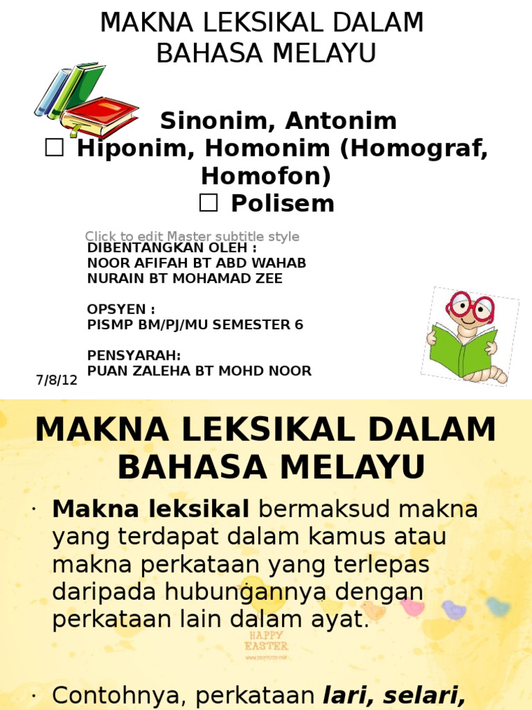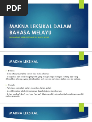 Related : Makna Leksikal Dalam Bahasa Melayu - Makna Leksikal Dalam Bahasa Melayu / Sesuatu istilah itu mempunyai makna yang tepat bagi konteks bidangnya..